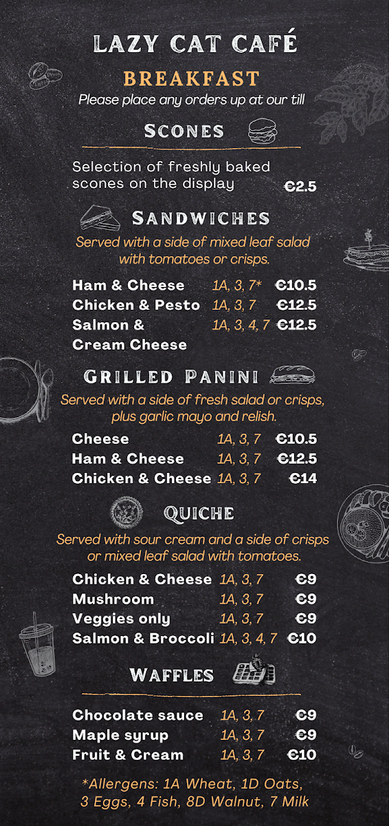 Lazy Cat Cafe Menu